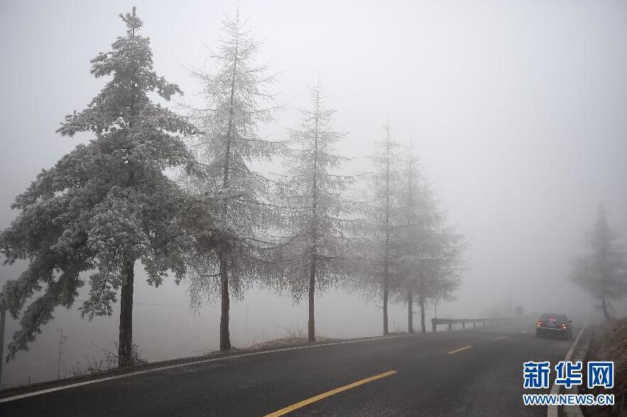 3月10日,一辆汽车在雾中的神农架道路上行驶。因独特的地理环境和近段低温天气,湖北省神农架高海拔地区出现雾凇景观,雾中的神农架美轮美奂,朦胧如画。 新华社记者 郝同前 摄 图片来源:新华网