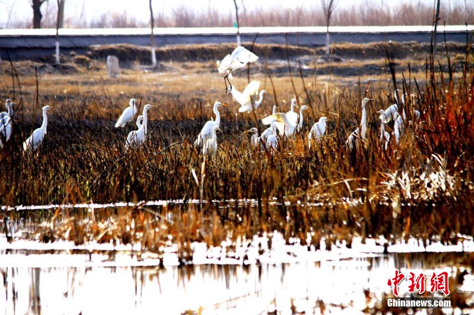 3月11日消息,惊蛰过后,天气回暖,一群白鹭在地处河西走廊的甘肃张掖国家湿地公园栖息飞舞。在宽阔的湿地上,成群的白鹭或在沼泽中觅食,或振翅高飞,或驻足凝神休息,成为春日里一道美丽的风景。早春三月,上百只迁徙的候鸟白鹭在途径甘肃张掖时,在湿地栖息休整,待补充能量后继续长途跋涉。陈礼 摄
