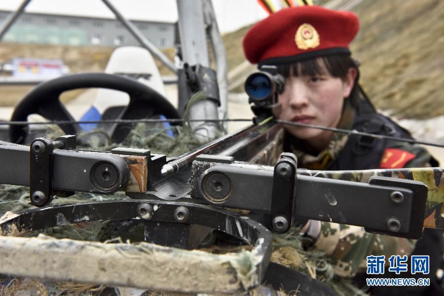 3月12日,“雪鹰女子特勤分队”队员李昌丹在进行弩枪训练。 新华社记者 赵戈 摄 图片来源:新华网