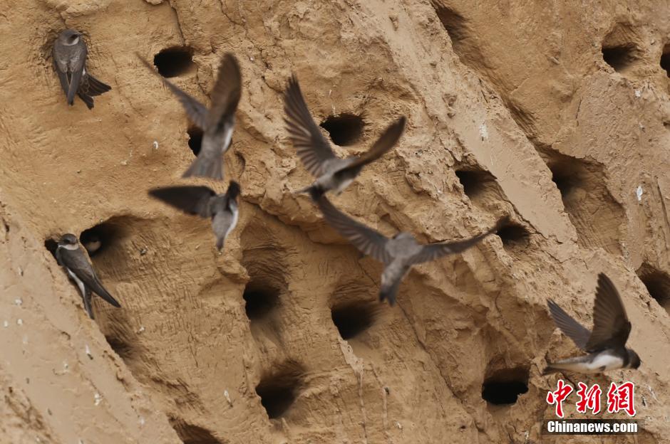 郑州市惠济区京水村北边一处建筑工地的三个基坑里数千只崖沙燕在此安家筑巢,基坑断面崖壁上打出密密麻麻的数百个小洞,成群的燕子飞来飞去。由于其中的一个基坑离正在施工的工地不远,随着工程进度的加快,燕巢面临着毁掉的危险,市民呼吁有关部门加以保护。杨正华 摄
