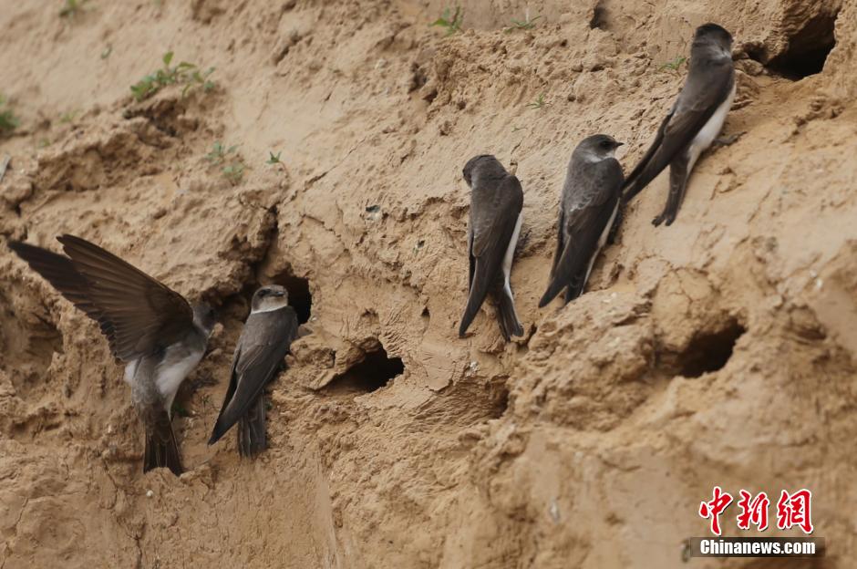 郑州市惠济区京水村北边一处建筑工地的三个基坑里数千只崖沙燕在此安家筑巢,基坑断面崖壁上打出密密麻麻的数百个小洞,成群的燕子飞来飞去。由于其中的一个基坑离正在施工的工地不远,随着工程进度的加快,燕巢面临着毁掉的危险,市民呼吁有关部门加以保护。杨正华 摄