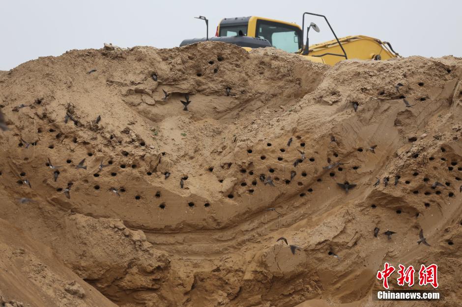 郑州市惠济区京水村北边一处建筑工地的三个基坑里数千只崖沙燕在此安家筑巢,基坑断面崖壁上打出密密麻麻的数百个小洞,成群的燕子飞来飞去。由于其中的一个基坑离正在施工的工地不远,随着工程进度的加快,燕巢面临着毁掉的危险,市民呼吁有关部门加以保护。杨正华 摄
