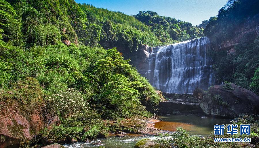 这是位于赤水丹霞景区内的十丈洞大瀑布(4月20日摄)。