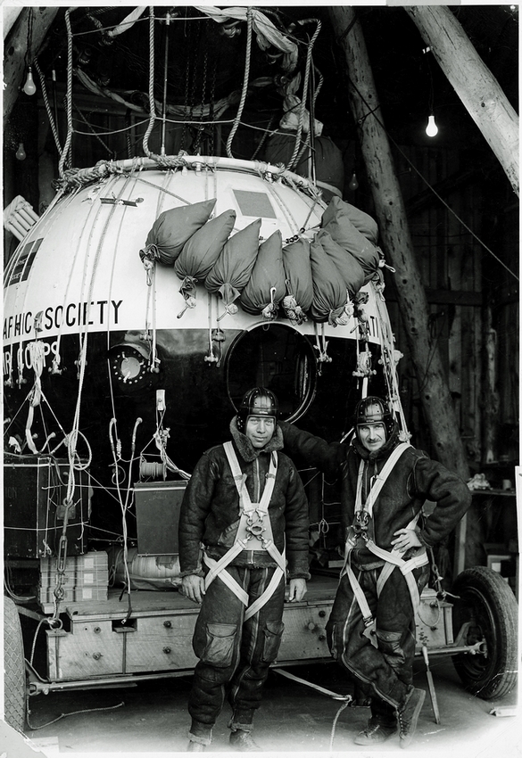 艾伯特 W.斯蒂文斯上尉(右)和奥维尔 A.安德森上尉,于1935年同乘全球最大的气球直达同温层,创造了世界纪录。