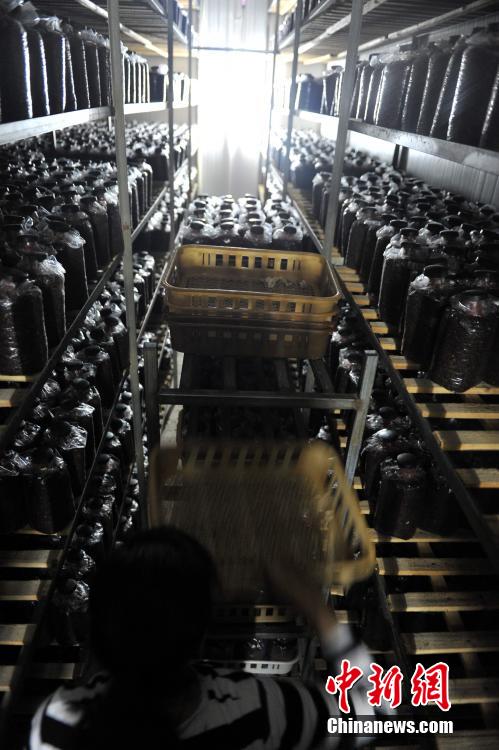 图为把已经接种的食用菌袋包放置在培养车间内。刘占昆 摄