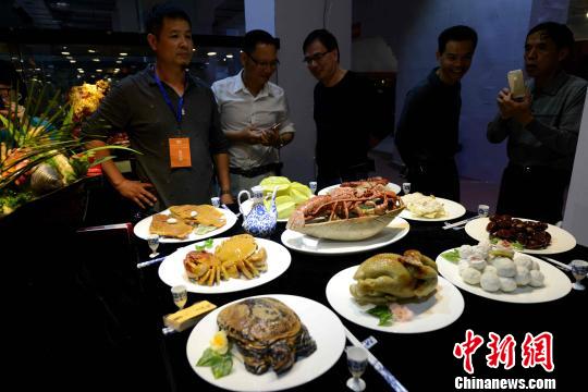 4月28日,由各种石头打造的“美食”亮相福建莆田工艺博览会,吸引许多人的眼球。