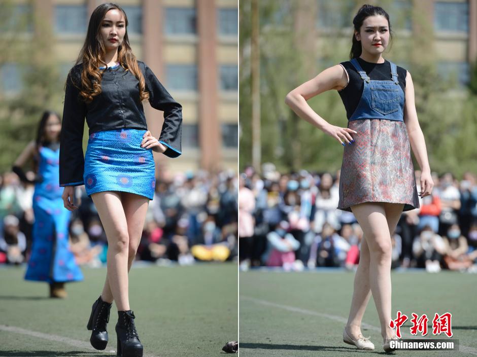 内蒙古高校那达慕 模特着蒙古族服饰走秀吸睛