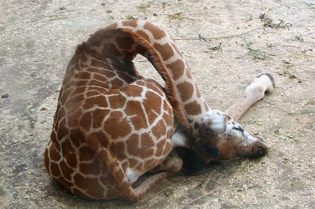 英媒公开长颈鹿罕见睡姿 让人看得脖子疼