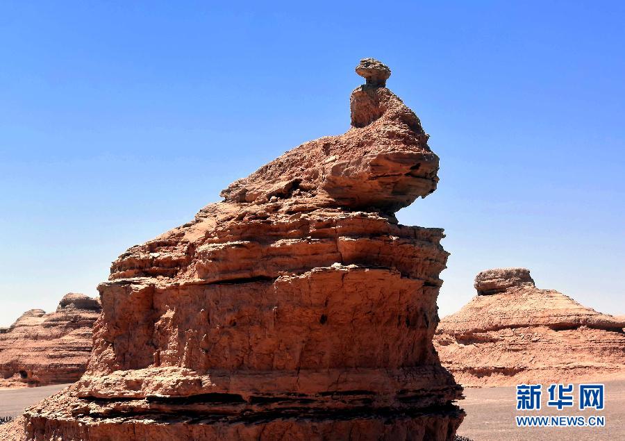 敦煌雅丹国家地质公园内的一处柱状雅丹地貌“孔雀”(5月24日摄)。