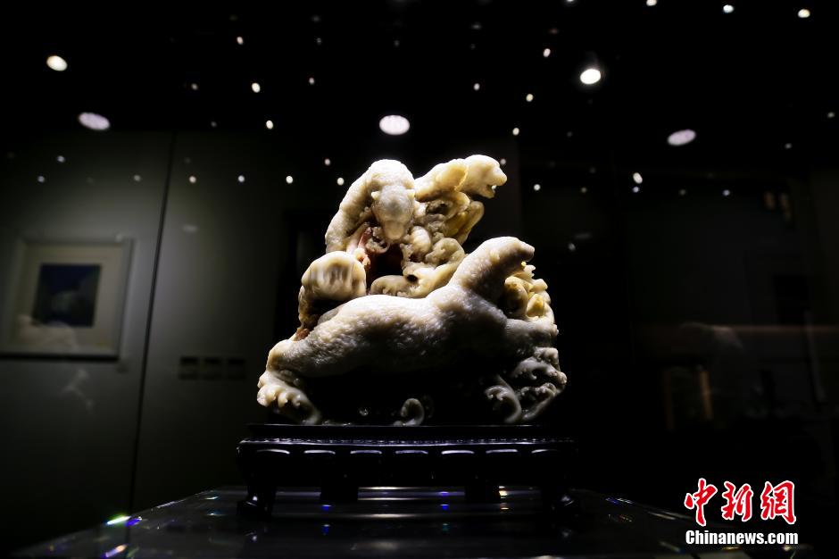 图为中国工艺美术大师林亨云创作雕刻的寿山石旗降焓红《寒冬一霸》。李南轩 摄