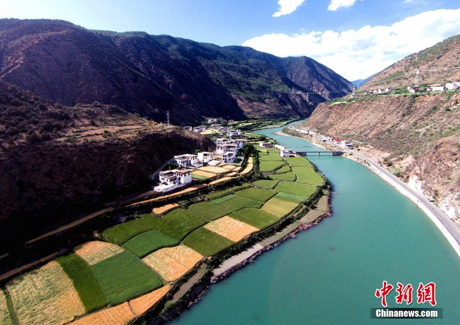据悉,乡城是藏语“卡称”的汉语音译,意为“手中的佛珠”。之所以取这个名字,是因为乡城境内的三条河流像一条丝线,把坐落在两岸的村寨串连在一起,犹如一串串佛珠。图为峡谷、河流、田园入景成画。刘忠俊 摄