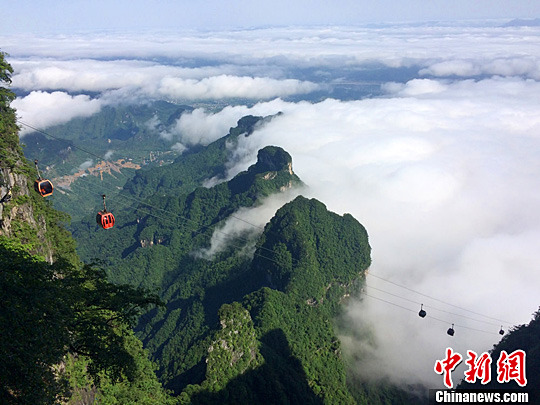 6月5日,湖南张家界告别连日阴雨,迎来一个大晴天。当天一大早,张家界天门山山腰处就出现一眼望不边际的云海,整个山顶浮在云端,美得恍若仙境,引得遇上云海的游客们一路惊叹。