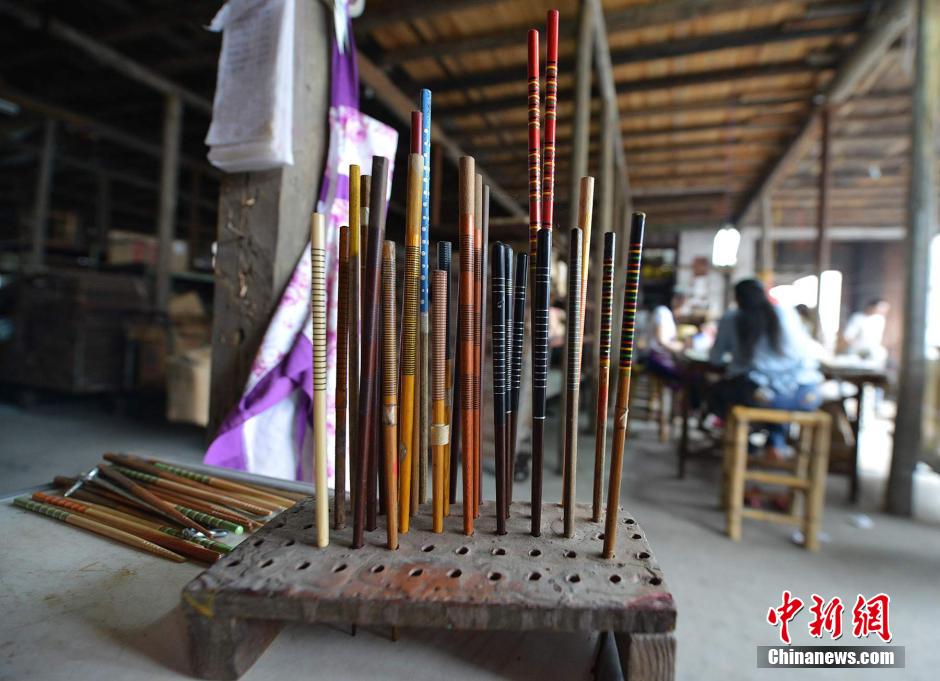 福州天天筷子厂生产的各种漆箸,如同一件件艺术品。 张斌 摄