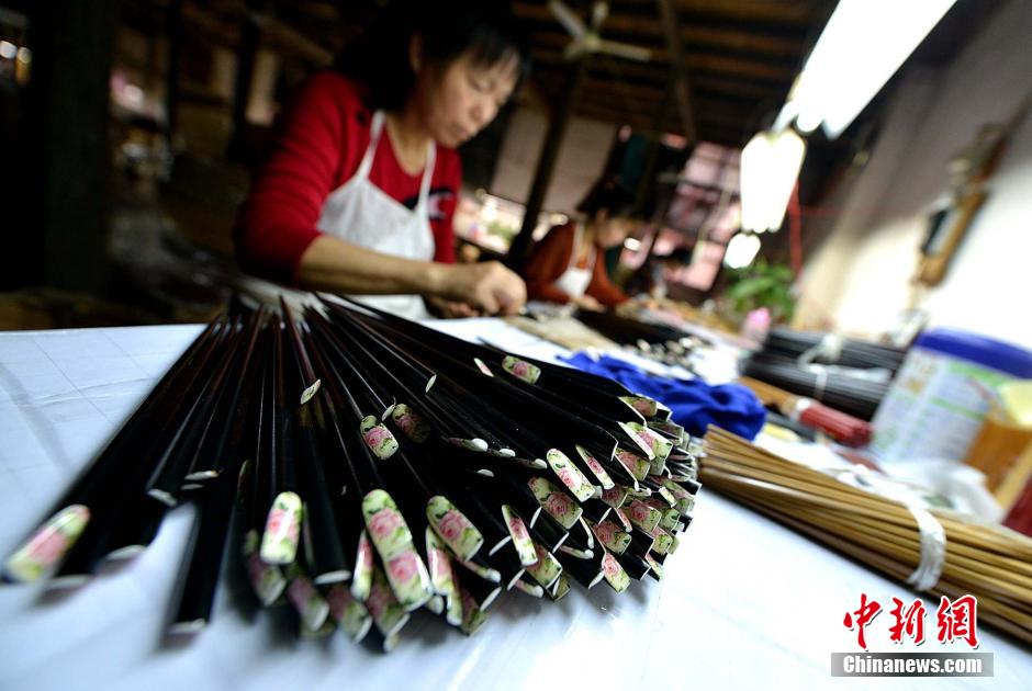 福州天天筷子厂生产一双漆箸,从毛坯到成品,需要经过20多道大小工序。 张斌 摄