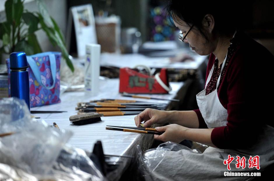福州天天筷子厂没有流水线,没有年轻人,只有熟练的老工人。工厂从过去高峰时期的800多名工人,缩减到现在的300多名工人。漆箸的制作因为核心工艺还是依靠传统手工技巧,无法百分百利用机械生产,导致人才流失、工匠大龄化等问题日益突出。再加上做漆箸很辛苦,一坐就是一整天,许多年轻人不愿意长期做下去,目前工厂里大多数师傅都是中年人。 张斌 摄