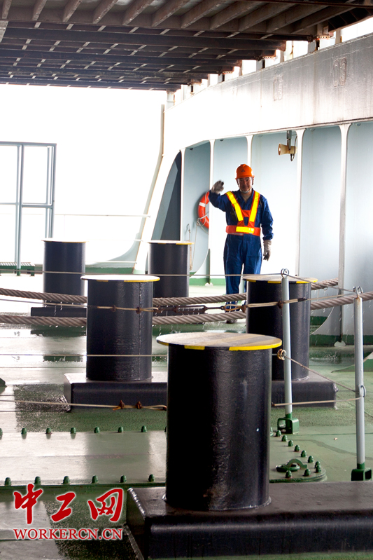 船舶通过结实的缆绳固定在岸边,每当靠港、离港时,系缆、解缆也就成为水头和兄弟们必不可少的一项工作。   中工网记者 李雪峰摄