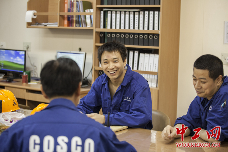 在船上,对于像吴松波这样的青年船员来说,孤独感是一个巨大的考验,“工作之余会和同事们聊聊天,有时一个话题已经聊过很多次,但是每次聊大家兴致还是很高。”吴松波说。中工网记者韩靖摄