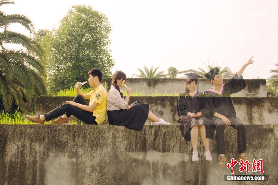 四川大学锦江学院学生送给学姐的一组创意毕业照备受关注。这组毕业照创意十足,画风唯美,每一张都以清新浪漫的格调讲述着青春的故事。曹睿 摄