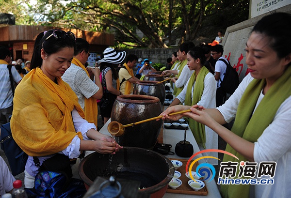 6月27日,网媒行的记者在东山岭“金盘洗手”。(南海网记者沙晓峰摄)