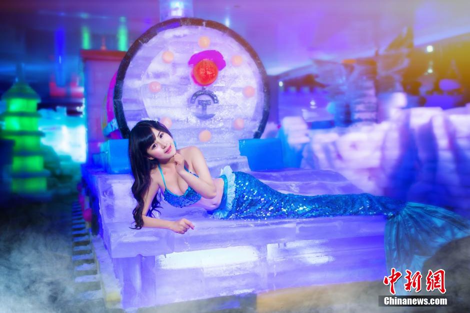 近日,一场美轮美奂的冰雪嘉年华在江西龙虎山景区举行,一位性感美女冒着-10℃的低温,身着一袭蓝色的人鱼装,或躺卧在冰块上化身妩媚“美人鱼”,或站着和冰雕卡通人物合影,演绎一幅幅妩媚的画面。据了解,龙虎山冰雪嘉年华将一直持续到8月31日,该活动将在炎炎盛夏为游客带来既好玩又实惠的酷爽体验。余锴 摄