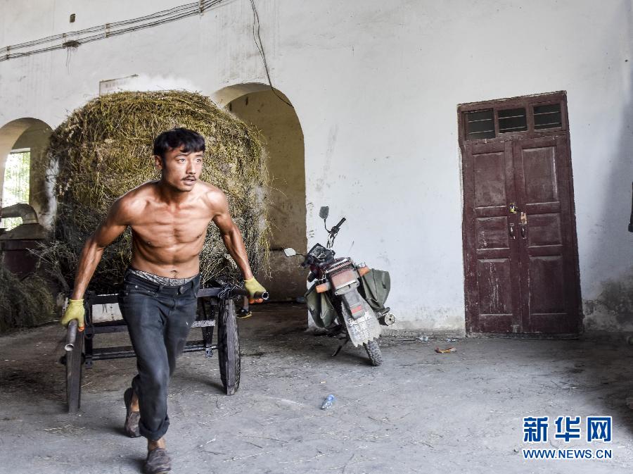 7月16日,一锅薰衣草熬制结束后,一位打零工的维吾尔族小伙将经过熬制的薰衣草干花送到院外。新华社记者 赵戈 摄