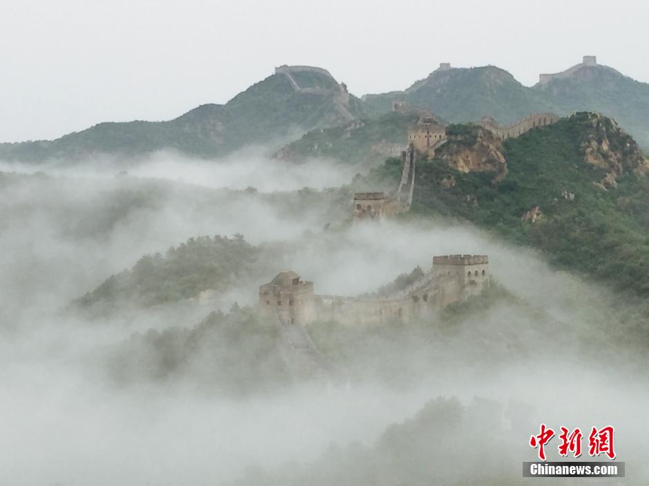 7月28日,河北省承德市,雷雨过后,滦平县金山岭长城出现壮美云海奇观。中新社发 周万萍 摄