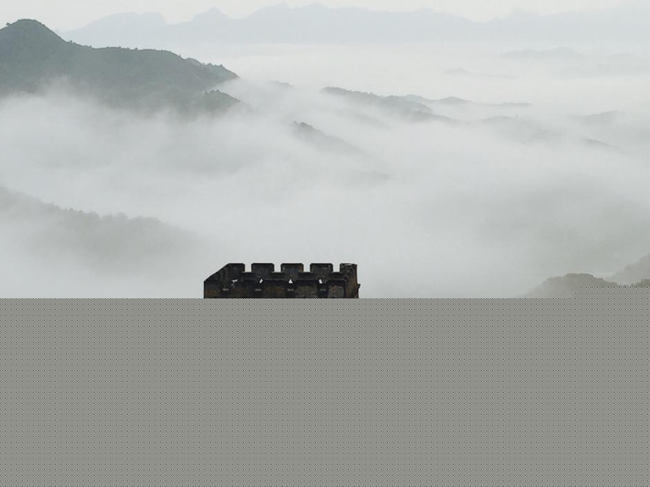 图为从金山岭长城的烽火台看去,云海环绕,十分壮观。中新社发 周万萍 摄