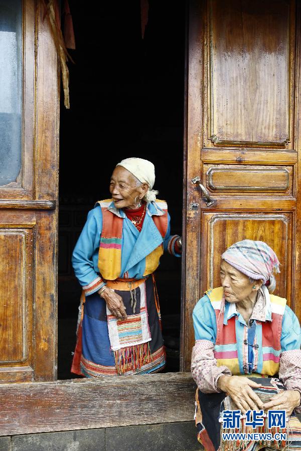 两名傈僳族老人在家里休闲(7月23日摄)。