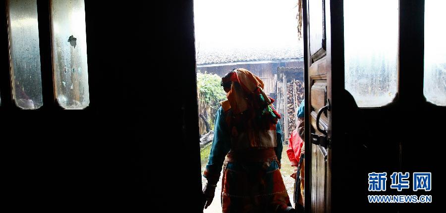 一位傈僳族村民从自家房屋走出(7月23日摄)。