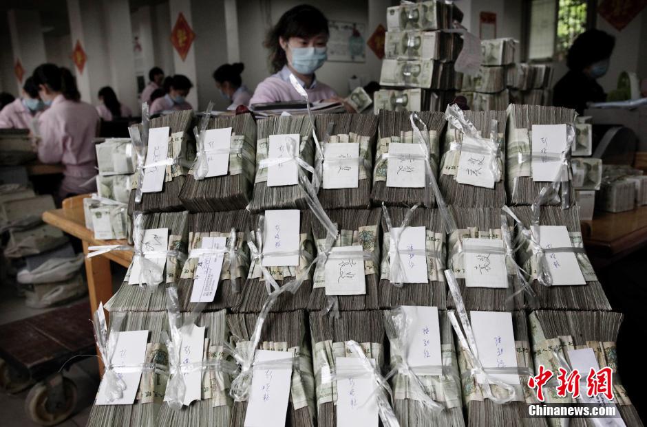 宜昌公交公司有公交车近940个班次,每天的零钱数约在35万元元左右,遇到节假日时最多可达40多万元。由于长时间清点钱币,点钞员们的手指常会出现酸痛、抽筋等症状。如果碰上一些乘客恶意在票包里扔玻璃、注射用的针头等利器时,受伤更是在所难免。对此,她们最大的心愿就是乘客不要使用假币残币,文明乘车。图为清点出的零钱上都有清点人的姓名。李风 摄