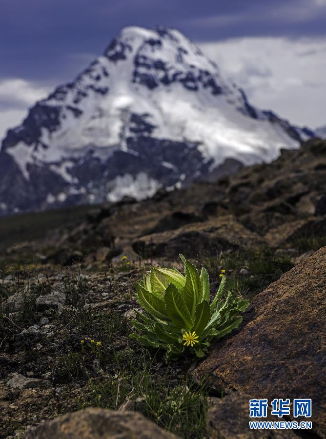 8月4日,雪莲花在博格达雪峰下含苞欲放。