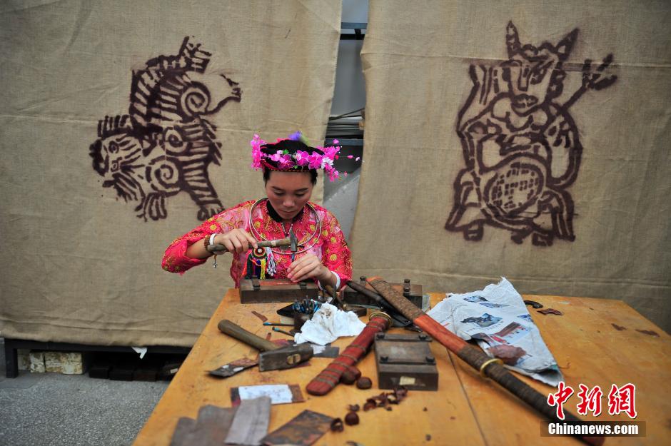 8月14日,阿昌族非遗传承人进行錾刻练习。近日,云南省63名少数民族学员来到昆明的云南艺术学院,将在金属、陶艺、刺绣等专业导师的指导下参加进行研修培训,苦练内功,以提高传承人的学习和领悟能力、提高传统工艺的审美水平和实用程度。 中新社发 刘冉阳 摄