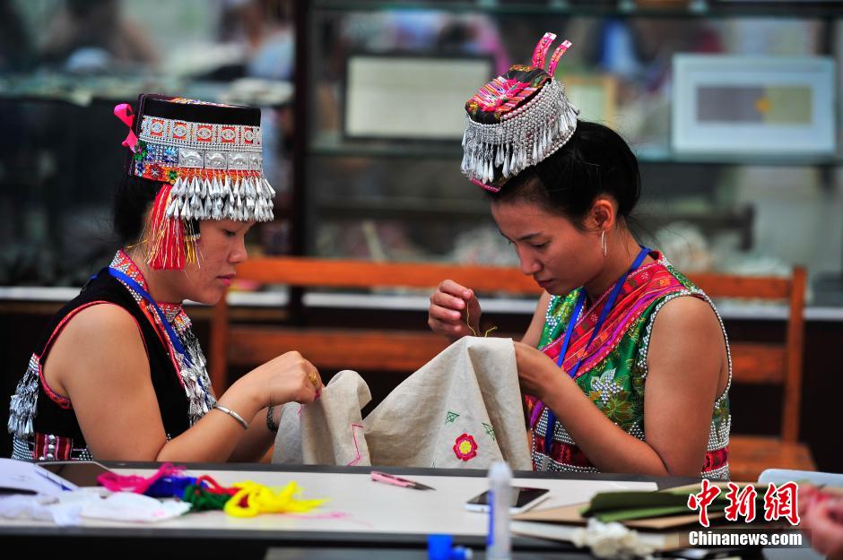 8月14日,花腰傣学员进行刺绣练习。中新社发 刘冉阳 摄