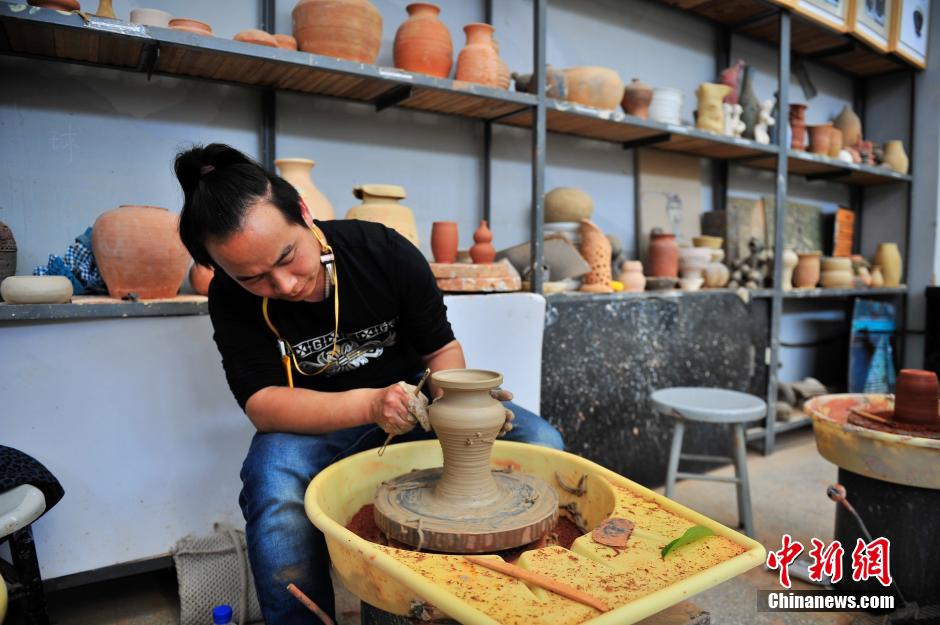 8月14日,陶艺班的学员做陶器。中新社发 刘冉阳 摄