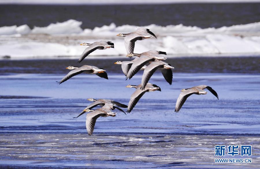 栖息在色林错国家级自然保护区内的斑头雁(2013年3月24日摄)。