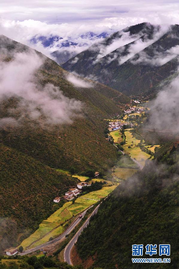西藏昌都市八宿县境内318国道旁的一个村庄(8月4日摄)。