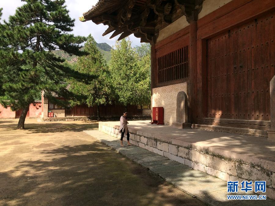9月1日,一位外地游客从五台山佛光寺东大殿前走过。