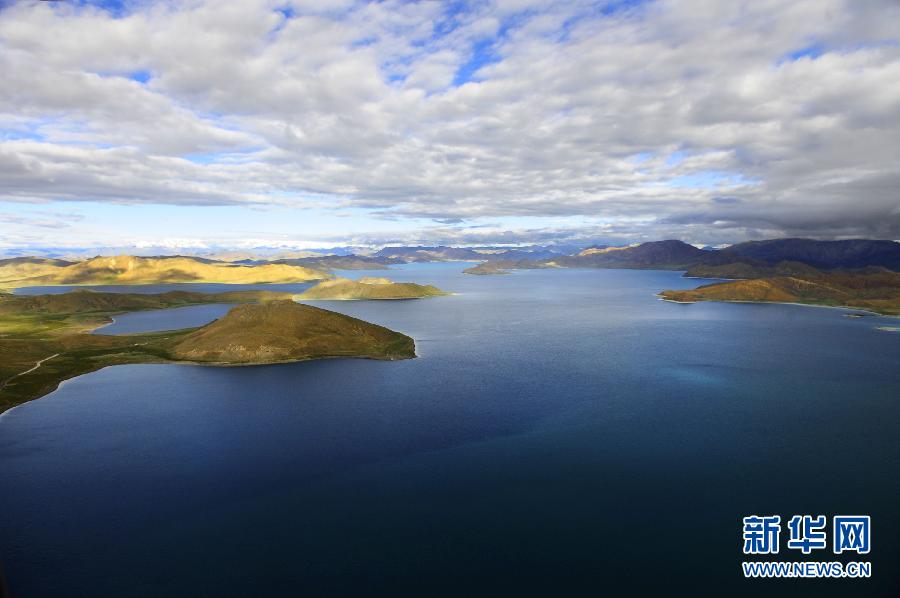 鸟瞰羊卓雍错美景(9月1日摄)。羊卓雍错简称羊湖,位于西藏山南地区浪卡子县境内,距拉萨不到100公里,湖面海拔4400多米,与纳木错、玛旁雍错并称西藏三大圣湖。羊卓雍错由于自然景色美丽迷人,每年都吸引大批国内外游客前来。 2013年,西藏已完成羊卓雍错生态环境保护项目的前期工作,2014年,国家已将羊卓雍错纳入100个良好湖泊生态环境保护试点工程项目之中。新华社记者 刘坤摄