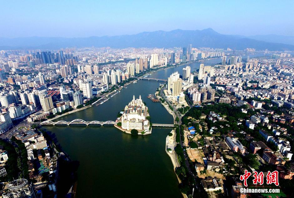 10月16日,离首届全国青运会在福州开幕仅剩2天时间,整个福州市已全面进入青运时间。记者从空中俯拍福州城市建设,喜迎青运会。图为福建母亲河闽江穿城而过。 王东明 摄