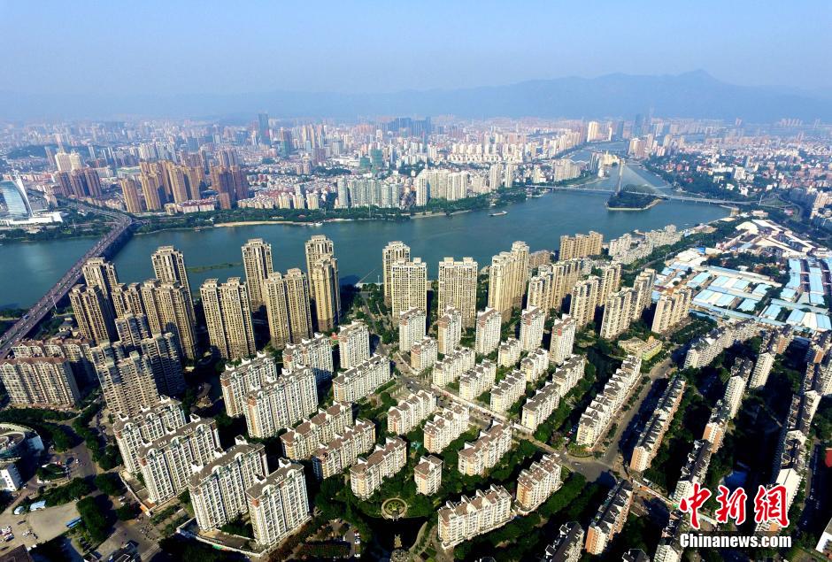 10月16日,离首届全国青运会在福州开幕仅剩2天时间,整个福州市已全面进入青运时间。记者从空中俯拍福州城市建设,喜迎青运会。图为闽江两岸高楼林立。 王东明 摄
