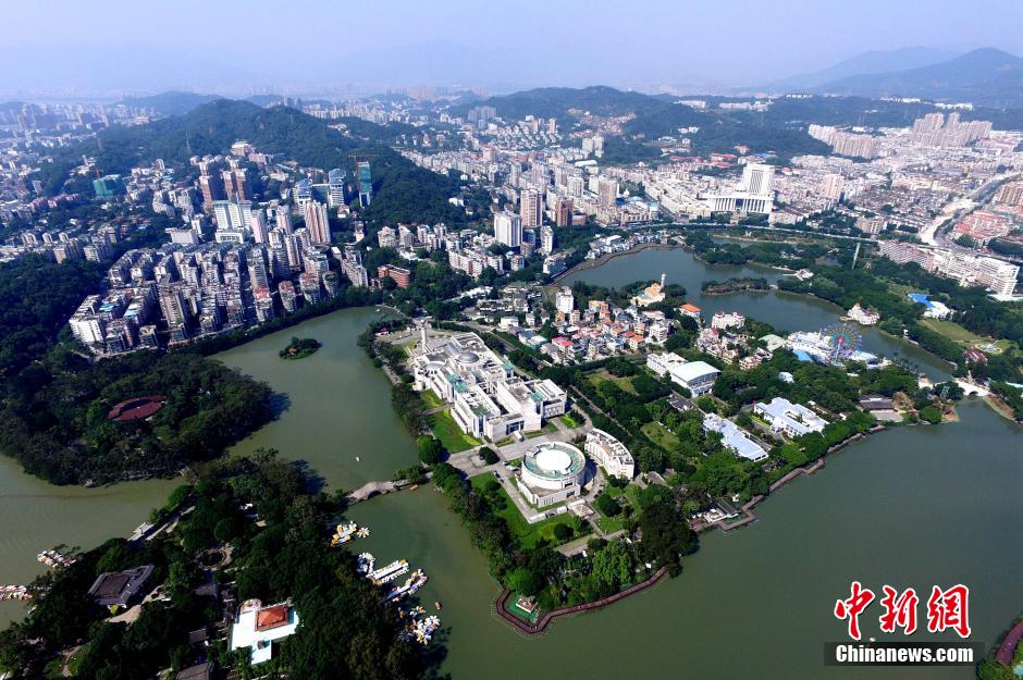 10月16日,离首届全国青运会在福州开幕仅剩2天时间,整个福州市已全面进入青运时间。记者从空中俯拍福州城市建设,喜迎青运会。图为福州西湖公园。 王东明 摄