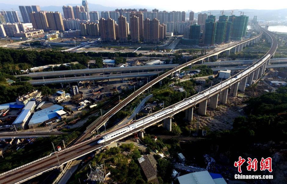 图为高铁穿城而过。 王东明 摄