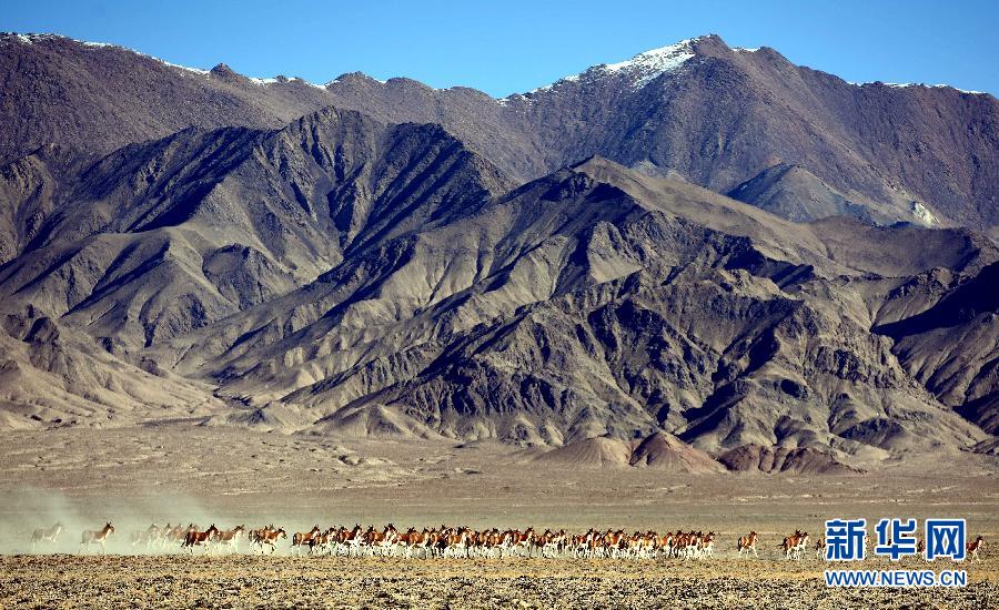 奔跑在阿尔金山国家级自然保护区内的野驴群(10月17日摄)。金秋十月,高原天气逐渐转凉,与罗布泊、可可西里和羌塘齐名的中国四大无人区之一——阿尔金山国家级自然保护区进入了一年中较为适合进入的季节。新华社记者 宋振平 摄