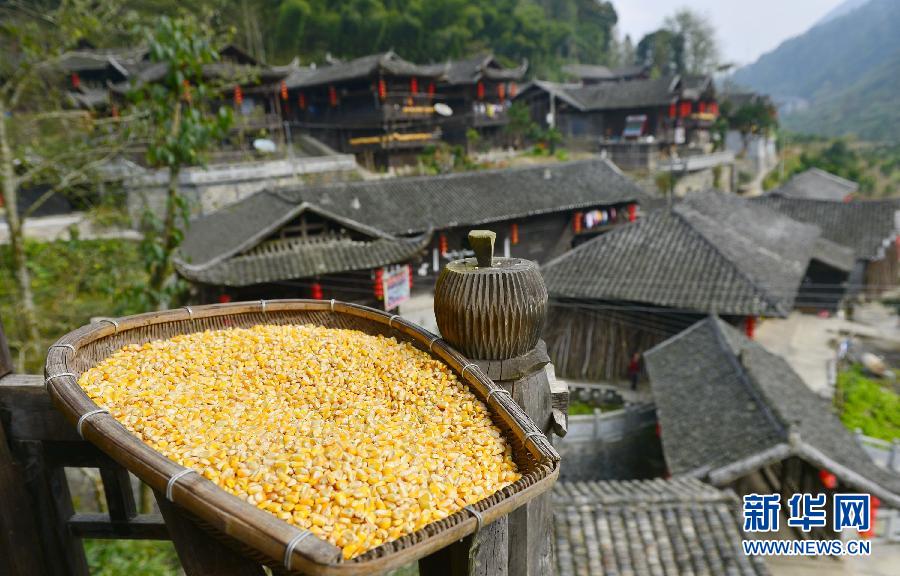 10月19日,彭家寨吊脚楼上晾晒着村民收获的玉米。