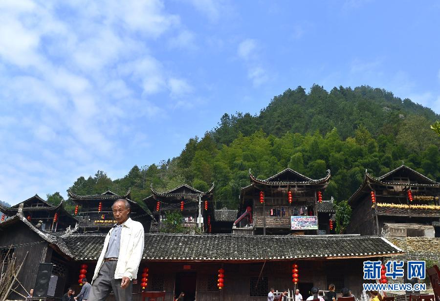 10月19日,一名老人从彭家寨吊脚楼前经过。