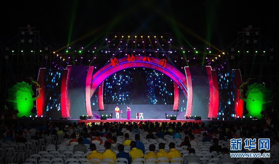 10月22日晚,运动员们在观看青运村内的文艺演出。 新华社记者李响摄