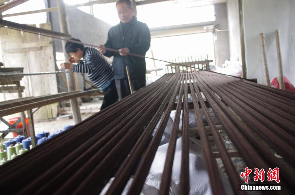 现年50岁的周晚秀开设的夏布作坊,是万载县马步乡黄村规模较大的一家,当宋树牙接来订单时,她就开工生产,根据订单要求,制作不同颜色的麻纱原料。王昊阳 摄