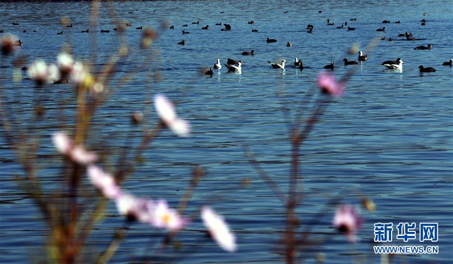 水鸟在泸沽湖中(11月21日摄)。新华社记者杨宗友摄