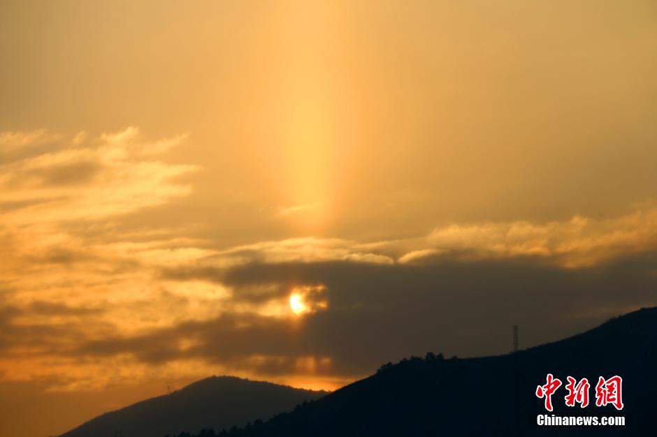 11月23日,河北省承德市连日几天的降雪之后,久违的太阳出来了。当日早间,承德市丰宁县实验中学教师李国权拍摄到一组太阳日出的图片,不同的是,当日的日出光晕呈现出火烛状,非常漂亮。李国权 摄