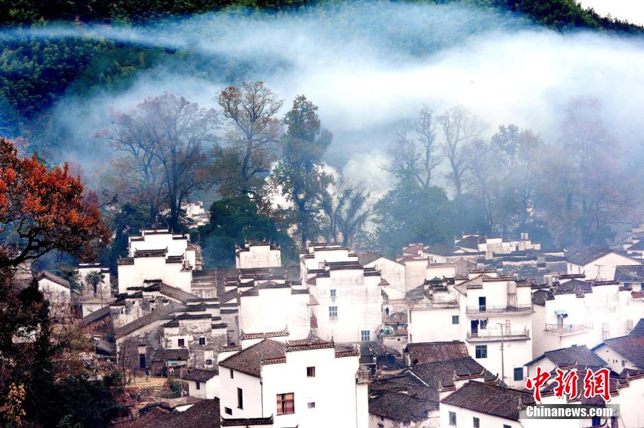 11月30日消息,时下正值初冬时节,在中国最美乡村江西婺源乡村,白墙黛瓦,层林尽染,五彩缤纷的树叶与萦绕飘逸的晨雾相应成景,宛如人间仙景,美不胜收。 卓忠伟 摄